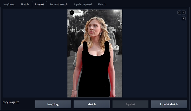 Select the picture and draw a mask over the part which needs to be nudified. It should look something like this: