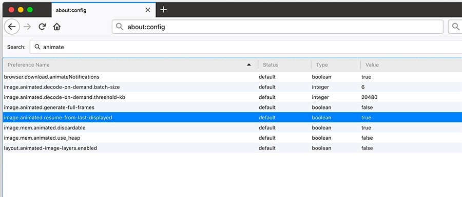 Firefox Hidden Settings animation