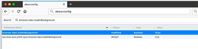 Look for the option browser.tabs.loadInBackground and set its value to “false”. Now, whenever you open a link in new tab, you will be immediately moved to it. Keep in mind though that this feature might not be great if you need to open multiple links from the same page, at a time.