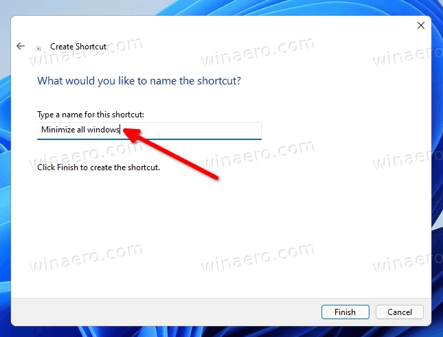 https://winaero.com/blog/wp-content/uploads/2021/07/Windows-11-shell-command-in-shortcut-object-2.png Give your shortcut some meaningful name.
